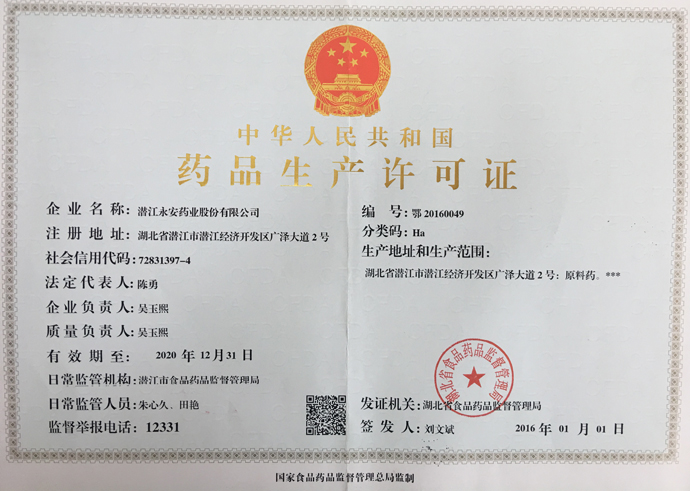 潛江永安藥業(yè)股份有限公司成立于2001年,坐落于江漢平原腹地潛江市國(guó)家高新技術(shù)產(chǎn)業(yè)開(kāi)發(fā)區(qū),占地500余畝,注冊(cè)資金貳億玖仟肆佰陸拾捌萬(wàn)貳仟伍佰元整,是一家擁有自主知識(shí)產(chǎn)權(quán)的國(guó)家高新技術(shù)企業(yè)。公司股票于2010年3 月5日在深圳證券交易所掛牌上市(股票代碼為002365)。公司具有雄厚的技術(shù)開(kāi)發(fā)能力,是湖北省創(chuàng)新型企業(yè)和湖北省知識(shí)產(chǎn)權(quán)建設(shè)示范企業(yè)。公司研發(fā)平臺(tái)分別被認(rèn)定為省級(jí)企業(yè)技術(shù)中心和湖北省功能性食品添加劑工程技術(shù)研究中心。 經(jīng)過(guò)多年的發(fā)展,公司形成了以食品及藥品添加劑牛磺